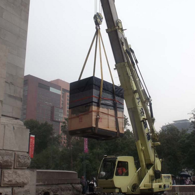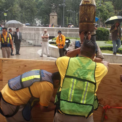 Es por ello que se ha requerido de un equipo muy importante de trabajo para la adecuada ubicación de las obras que conforman la exposición: "Leonardo Da Vinci y la idea de la belleza" y "Miguel Ángel Buonarroti un artista entre dos mundos". En grúas Tooska estamos orgullosos y satisfechos de haber formado parte de las maniobras de elevación de tan importantes obras de arte. Y de igual modo, reconocemos y agradecemos la confianza que nos ha brindado uno de nuestro clientes más importantes, Auto Transportes Internacionales, por habernos incluido en sus maniobras para el descargue. Nuestra labor consistía en elevar por los balcones del Palacio de Bellas Artes las cajas que contenían las piezas artísticas, entre ellas el celebre “códice del vuelo de las ave” de Leonardo, uno de los más importantes documentos que se hayan escrito sobre la aviación en el mundo. El reto era realizar las elevaciones con la mejor precisión posible, por ello decidimos emplear la grúa Kato KR22, una grúa compacta, que podía ser muy bien utilizada sobre la explanada del Palacio de Bellas Artes. En el día y la madrugada del 19 de Junio del 2015, fueron realizadas las maniobras de elevación de manera precisa.