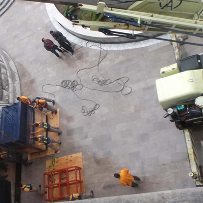 Grúas Tooska, nuevamente presente en los eventos culturales, esta vez para elevar con la Kato KR22, las obras de Da Vinci y Miguel Angel.