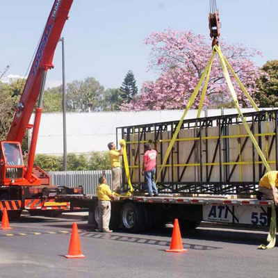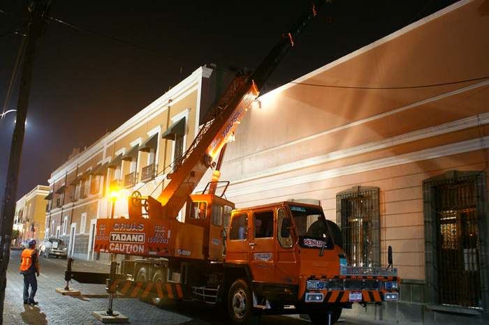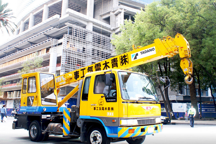 Grúa industrial Tadano TL200, cargando mural de "Río Juchitán" de Diego Rivera en el Museo del Niño de Cuernavaca, Morelos